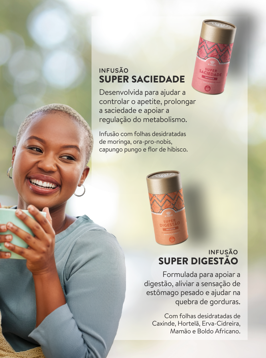 A infusão funcional Super Digestão foi cuidadosamente formulada para proporcionar um suporte natural e eficaz após as refeições, especialmente nos momentos em que exageramos na quantidade ou no consumo de alimentos pesados e gordurosos.