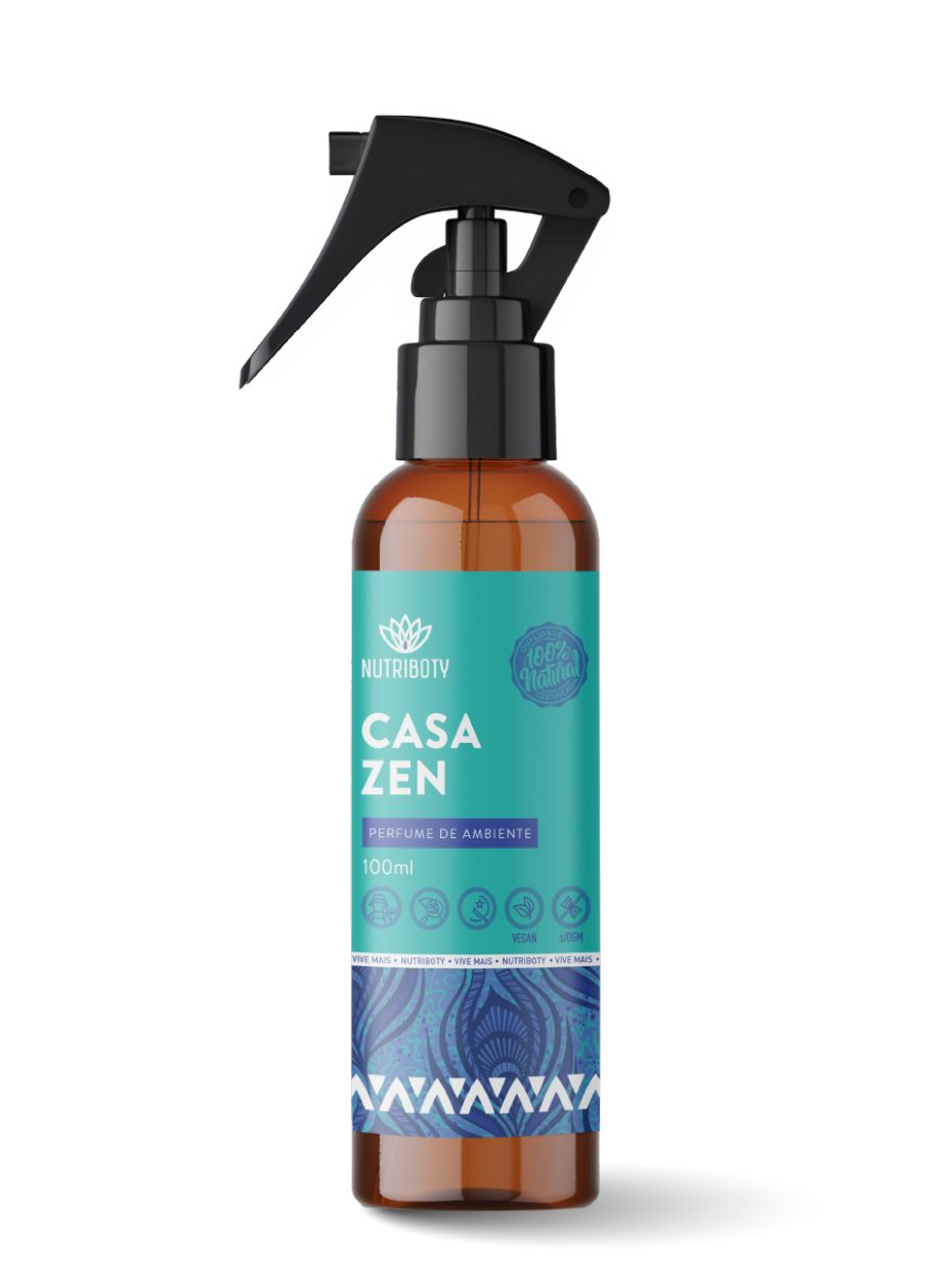 O Perfume de Ambiente Casa Zen da Nutriboty é totalmente natural e feito a partir dos óleos essenciais biológicos de lavanda e erva-cidreira, com propriedades equilibrantes para um ambiente harmonioso e confortável.